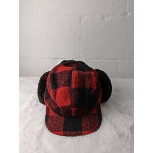 Woolrich Mens M Red Black Buffalo Plaid Hunting Cap Winter Ear Flaps Vintage Made In USA