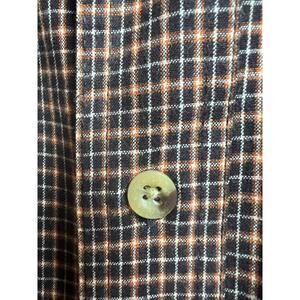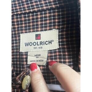 This Woolrich button-up shirt is a must have for any wardrobe. With it's medium wight and long sleeves, it's perfect for winter and fall. The shirt features a collared neckline, button closure, and easy-care fabric that is machine washable. It also has pockets, making it practical and functional for everyday wear or travel, and its plaid pattern gives it a retro 90s vibe.