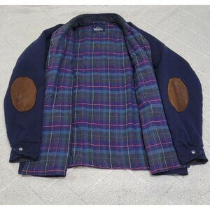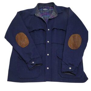 Woolrich Mens Navy Blue Snap Front Jacket Long Sleeve Elbow Patches Size L
