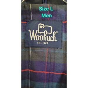 Woolrich Men's Navy Blue Snap Front Jacket Long Sleeve Elbow Patches Size LThis item is pre-owned in Good Condition with no holes, but has some light signs of wear to it. Light wash wear, light small very light stain. For Best Description Please See All Photos Closely Before Purchasing.. If you have any questions about an item or require additional information, please contact me prior to purchase.