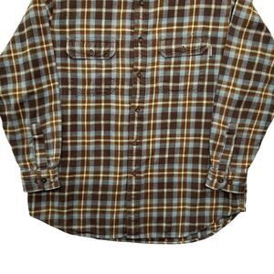 Woolrich men's plaid cotton flannel button up shirt in gently used condition!
