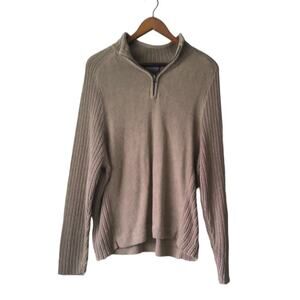 Woolrich Men's Quarter Zip Tan / Dark Wheat Sweater Large Ramie Cotton Pullover