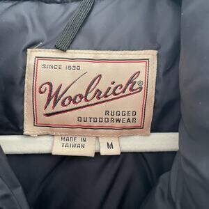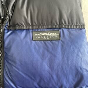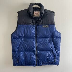 Woolrich Men's Size M Blue Black Goose Down Nylon Puffer Vest Zip Pockets