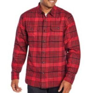 Woolrich Men's Size M Brawny Plaid Flannel Heavy Shirt Pockets Red Black