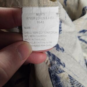 Woolrich Mens XL Beige River Lures & Fish Fishing Graphics Button Down Shirt