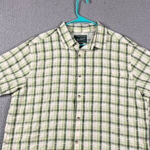 Woolrich Men's XL Green Plaid Short Sleeve Shirt Vented Outdoor Fishing Hike