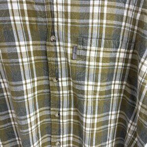 Woolrich Mens XL Shirt Green Plaid Button Front Short Sleeve Outdoor Casual