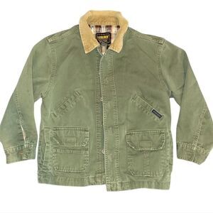 Woolrich Military Green Button-Front Flannel Jacket Cotton Lined with corduroy