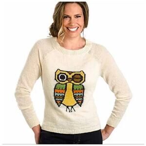 Woolrich Mohair Blend Owl winking Sweater Cream Color Size Large