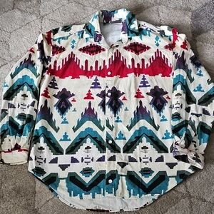 Vibrant button-down shirt by Woolrich. Features a bold geometric pattern. Perfect for casual wear.