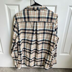 Vibrant plaid shirt by Woolrich. Features a blend of orange, green, and white.