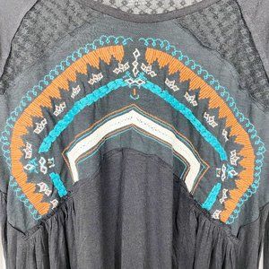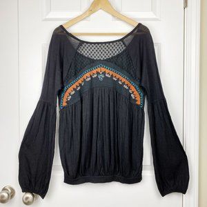 Woolrich, NWOT, Womens Blouse Black Long Sleeve Embroider, Medium