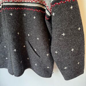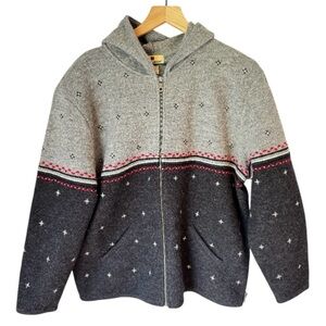 Woolrich Onyx Heather Embroidered Full Zip Nordic Hooded Wool Sweater Size XL