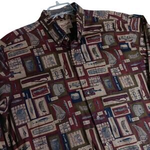 Woolrich Original Outdoor Vintage Shirt XL Red All Over Fish & Tackle Cotton