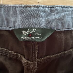 These Woolrich carpenter utility pants are a versatile addition to any wardrobe. With a solid pattern and olive color, they're perfect for casual wear or workwear. The pants feature a zip closure, belt loops, and a flat front for a classic look.