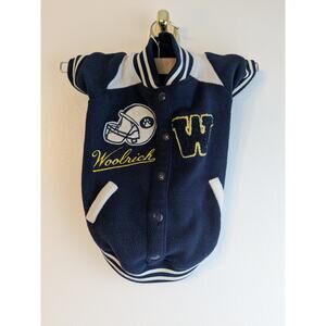 Woolrich Pet Size M Dog Varsity Football Letterman Jacket Navy Blue Sporty Retro