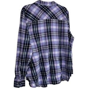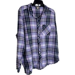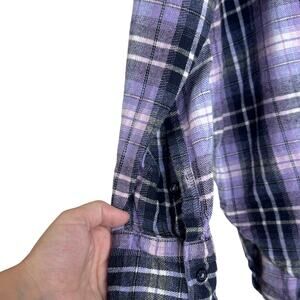 This item is a Woolrich Purple and Black Plaid Flannel Button-Up Shirt.