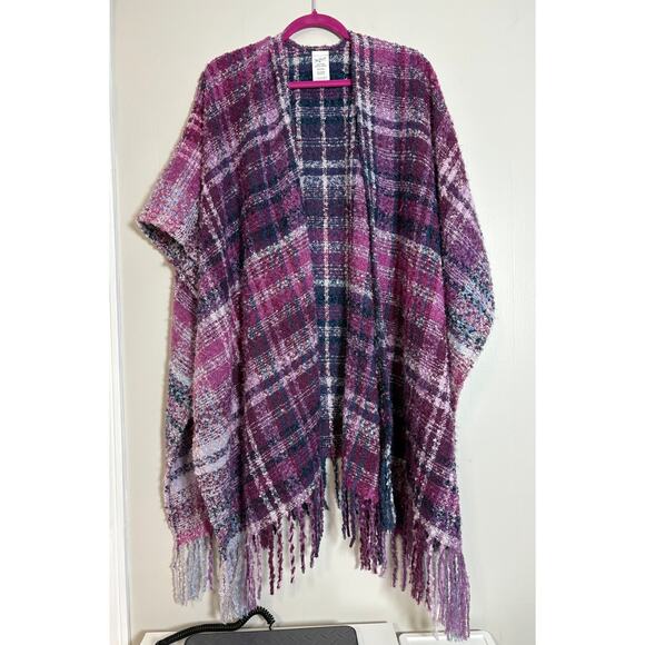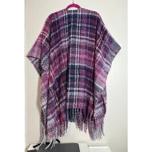 Woolrich Plaid Ultra Soft Cozy Blanket Wrap Shawl Poncho Purple One Size