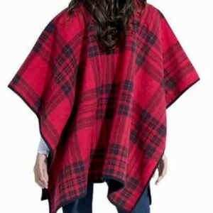 Woolrich EUC Red Black Tartan Blanket/Shawl, Reversible Cape One Size Fits Most, Tall Fit Generous
