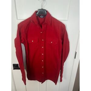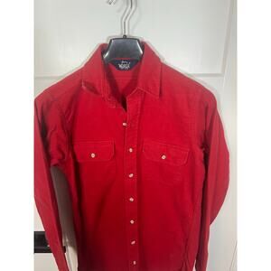 Woolrich Red Vintage Button Down 100% Cotton Size M Medium Mens Long Sleeve