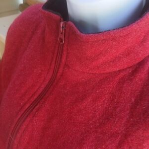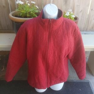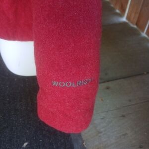 Cozy and stylish Woolrich jacket. Vibrant ruby red color. Full zip with two front zippered pockets. Lined.