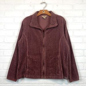 Woolrich Ribbed Corduroy Hazelberry Maroon Ribbed Zip Up Jacket in a size large!