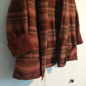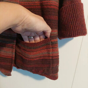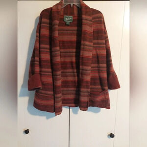 Woolrich Ruby Multi Burgundy Brown Striped Open Cardigan sweater S