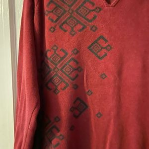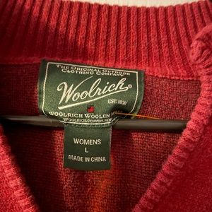 Woolrich Scandinavian Snowflake V-neck Sweater Size Large Red Gray Cotton Ruby