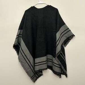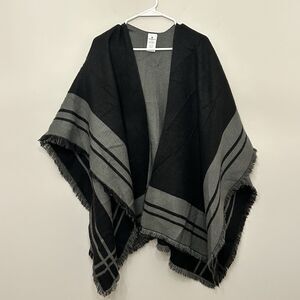 Woolrich Shawl One Size Women Gray Black Open Front Cape Poncho Acrylic