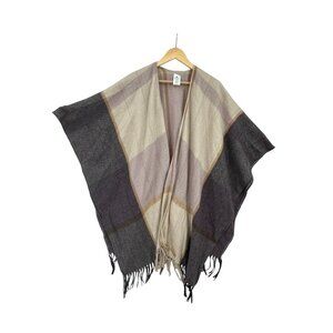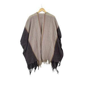 Woolrich Shawl Poncho Wrap OSFM Women Fringe Lagenlook Blanket Cottagecore Comfy