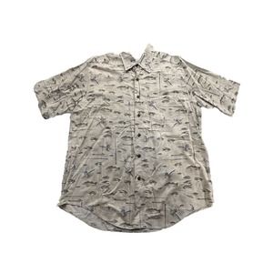 Woolrich Shirt Mens LGE Beige Fishing Print Short Sleeve Button Down Outdoor