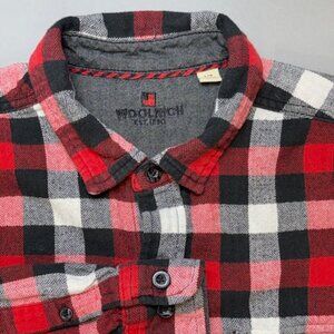 Woolrich Shirt Mens Large Black Red Flannel Plaid Button Up Lumberjack Outdoors
