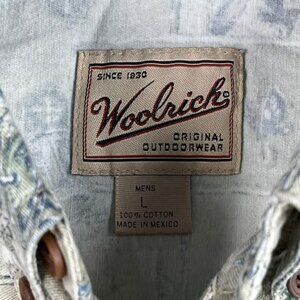 Woolrich Shirt Mens Large Fishing Lures Reels Vintage Button-Up Short-Sleeve