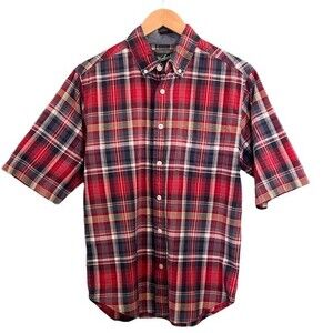 Woolrich Mens Top Red Plaid Short Sleeve 100% Cotton Buttonup Shirt Size Small