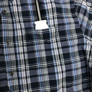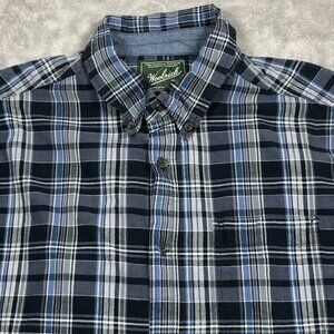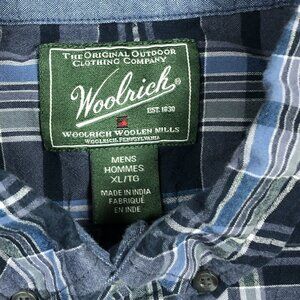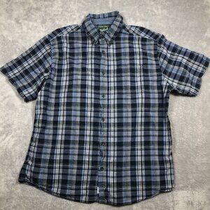 Woolrich Shirt Mens XL Blue Plaid Organic Cotton Short Sleeve Button Up Outdoor