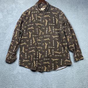Woolrich Shirt Mens XL Brown Flannel Dark Wood Canoe All Over Print Outdoors