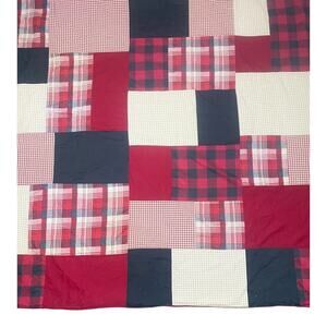 Woolrich Shower Curtain Patchwork Black Red & White Fabric Cotton 68x68 Set of 2 (NOTE - pictures only shows 1 curtain, but there are TWO)