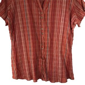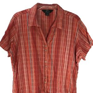 Woolrich Size XXL Crinkle Weave Orange Pink Plaid Button Up Shirt-242