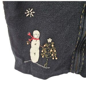 Woolrich Snowman Sweater Vest Black Christmas Appliqué Zip Snowflakes Vintage