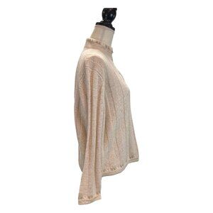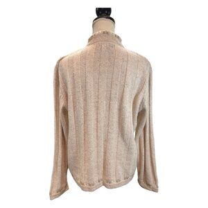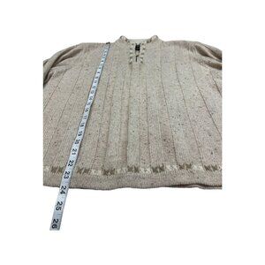 Woolrich Sweater Womens L Cream Wool Blend 1/4 Zip Textured Embroidered Pullover