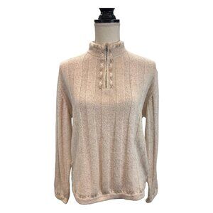 Woolrich Sweater Womens L Cream Wool Blend 1/4 Zip Textured Embroidered Pullover Fleece Lined