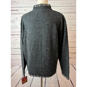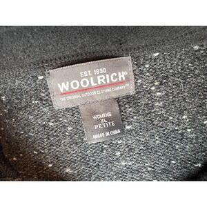 NWT Woolrich Sweater size XL Petite XLP 1/2 down collar, knit. Onyx heather in dark gray. Mock turtleneck when fully zipped. Aztec pattern. Vintage Vtg NOS from Dillards dead stock. WPL 6635 Straight hem. Pit to pit 23", back bottom of collar to bottom of sweater 24.5". 55% Ramie 15% Acrylic 15% Wool. Made in China. Great new with tags condition makes a perfect gift for the business casual or career working woman. 90098