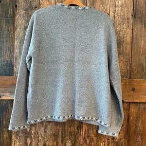 Woolrich Sz M Heather Blue Wool Blend Button Down Embroidered Cardigan Sweater