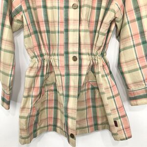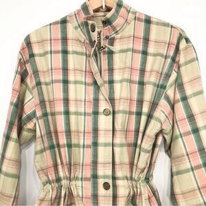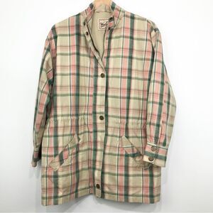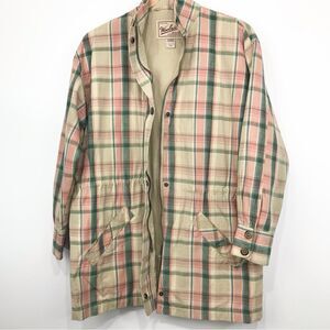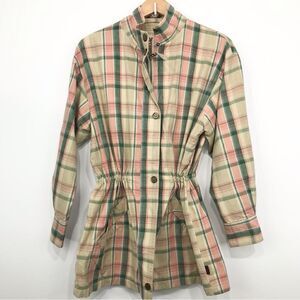 Woolrich Tan Pink Green Plaid 100% Cotton Gathered Zip up Jacket