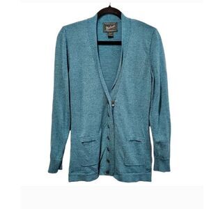 Woolrich Teal 100% Merino Wool Half Button UP Cardigan Pockets size Medium