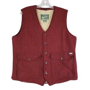 Woolrich Vest Sherpa Fleece Lined Burgundy Wool Gilet Mens Size M Medium Snap