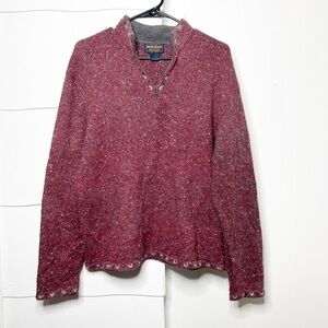 Perfect condition no flaws. Size XL. Color is called Ruby, 1/4 zip neckline. Grey and white embroidery around hems.