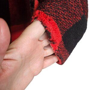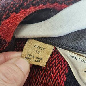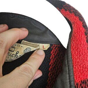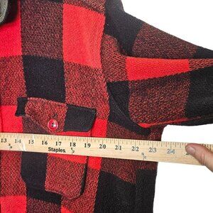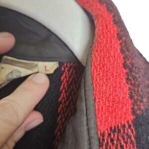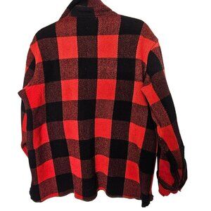 Vintage Woolrich buffalo plaid wool jacket in red and black. Size L, button down style with noted flaws.
