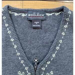 Woolrich Vintage Charcoal Heather Embroidered Zip Wool Blend Knitted Vest sz Med