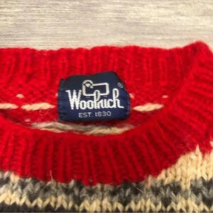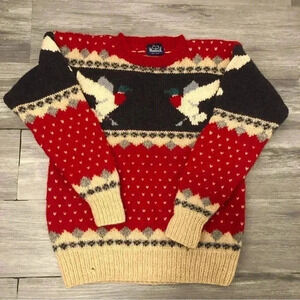 Woolrich Vintage Nordic Bird Fair Isle Wool Sweater Red Cream Pullover Sz S